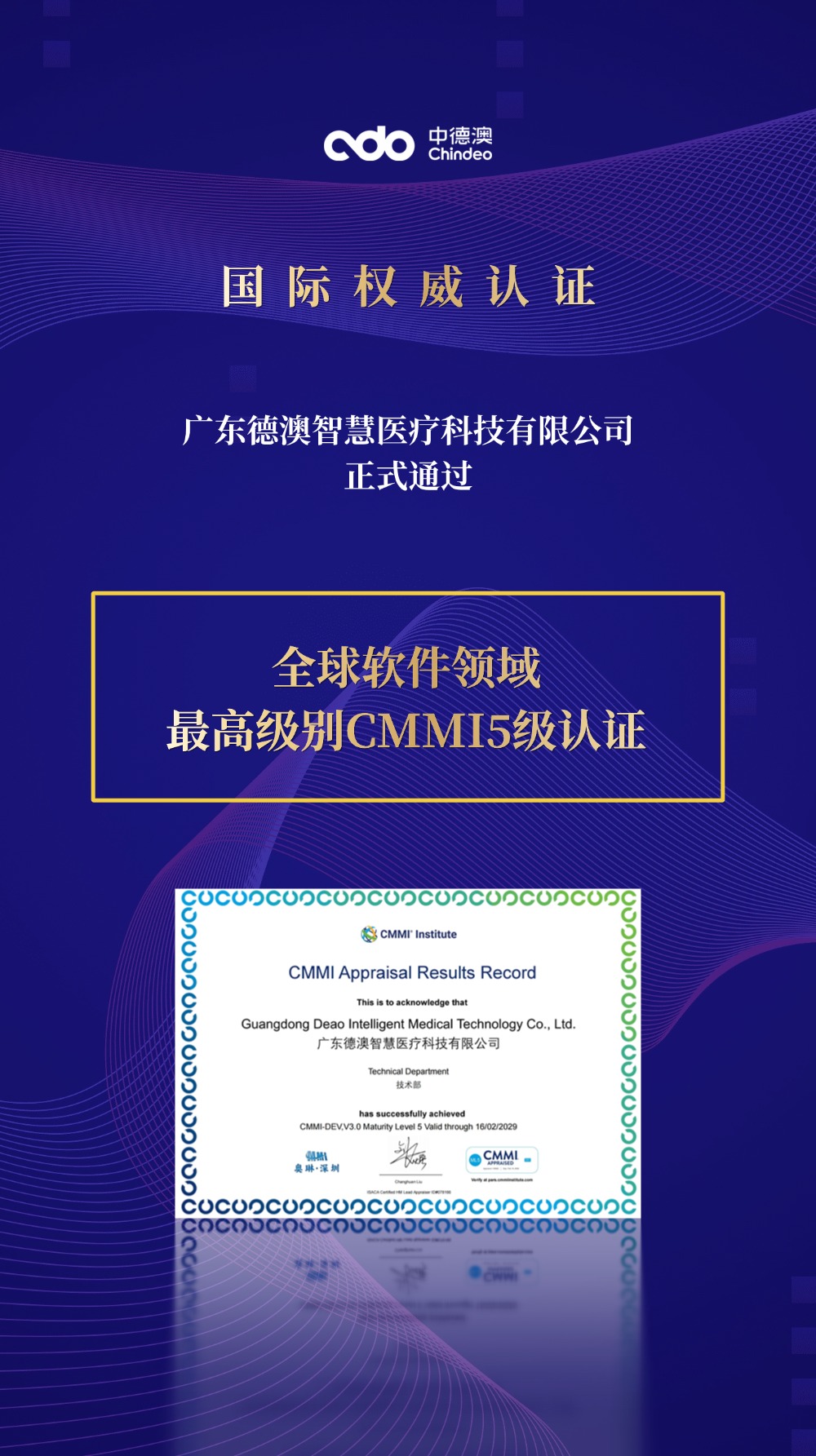 本次通过CMMI5级认证,不仅是对中德澳技术实力与管理成熟度的国际认可,也是中德澳发展历程中的重要里程碑。